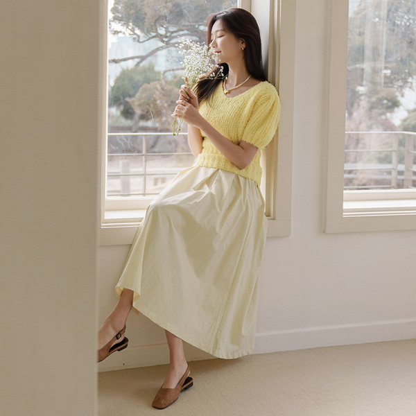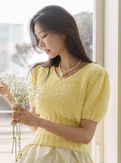 春季 颜色 可爱 ODE 泡泡袖 袖 针织衫