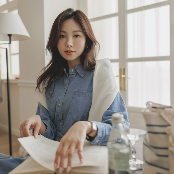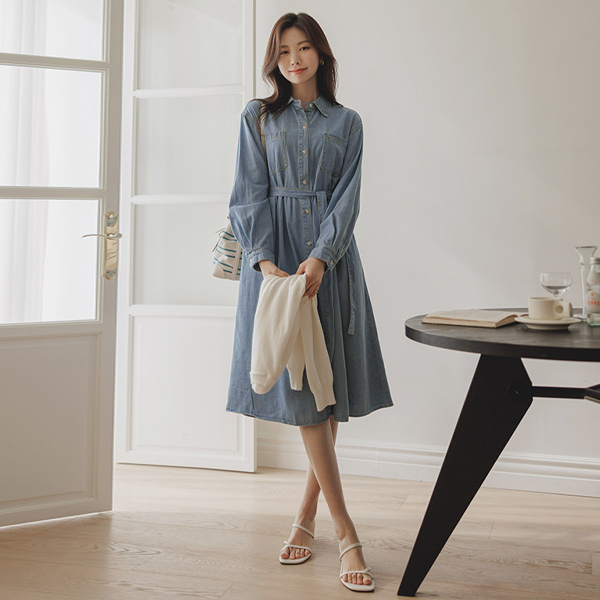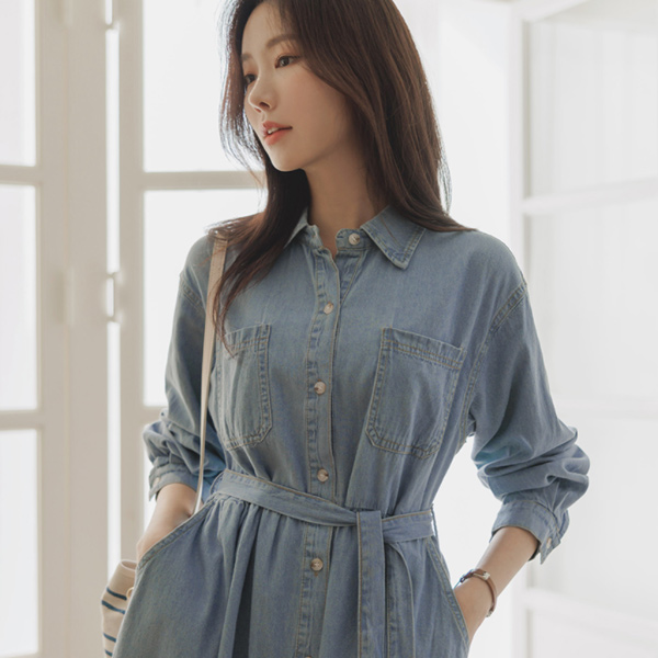 郊游装 A字型 口袋 牛仔色 连衣裙