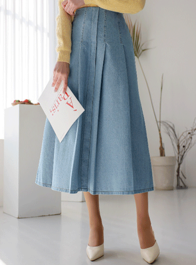 宽松 褶边 牛仔色 高腰 裙子
