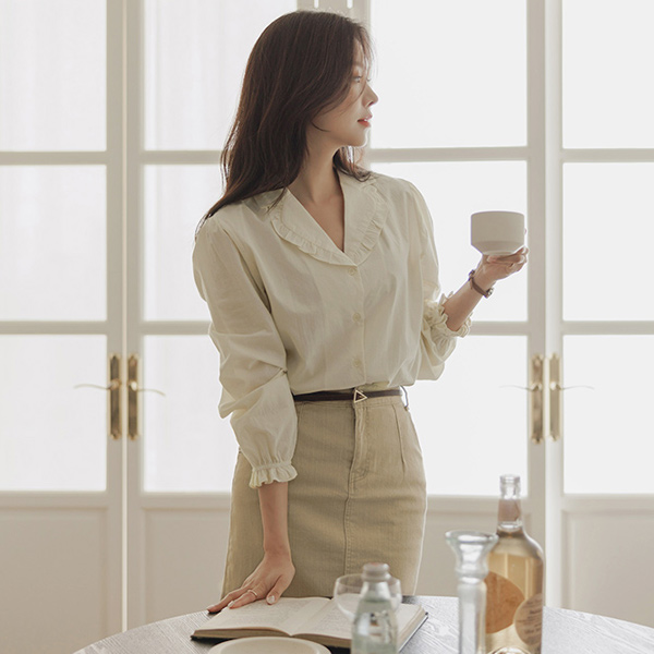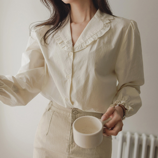 ODE 领子 蕾丝 棉 罩衫