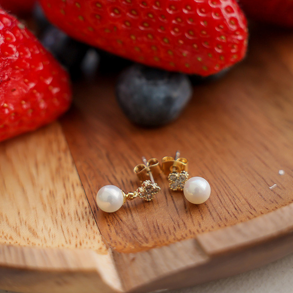 镶钻 花纹 珍珠 吊坠 耳环