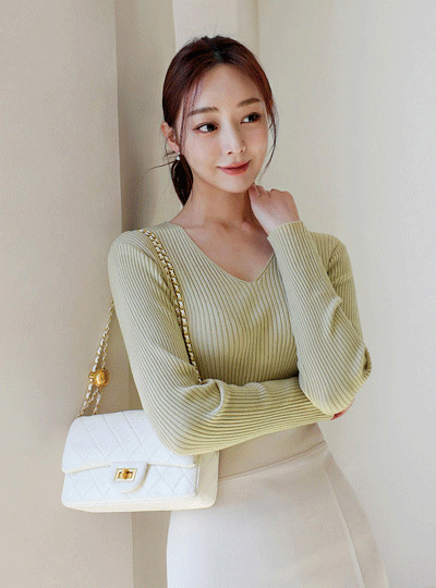 Macaron V领 条绒 柔丝 针织t恤