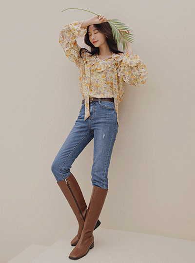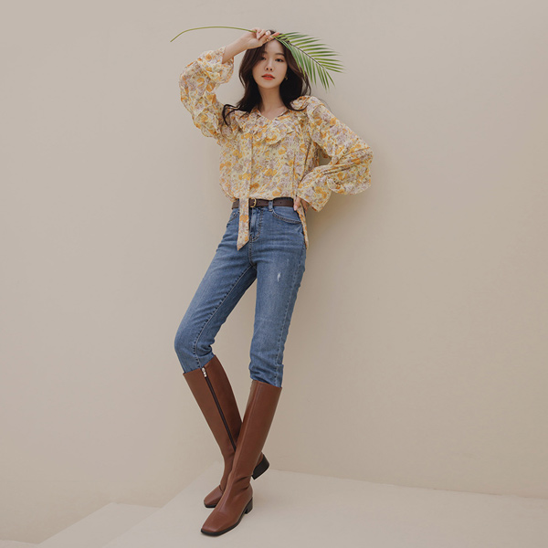 浪漫 花纹 褶裥 雪纺 罩衫