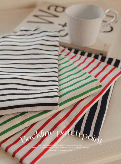 后面 补丁 点缀 条纹 T恤衫