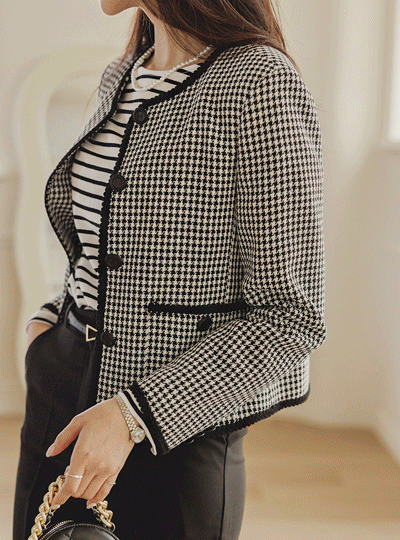 迷你 格子 图案 点缀 7分裤 夹克