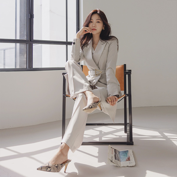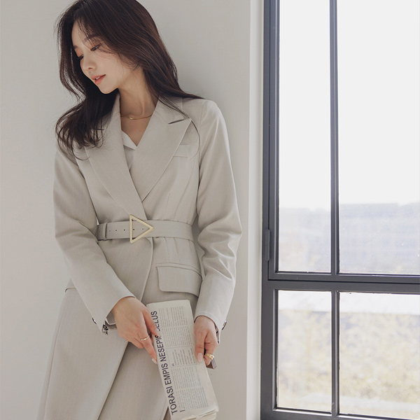 条纹 腰带 (套装) 长款 斯利姆 夹克