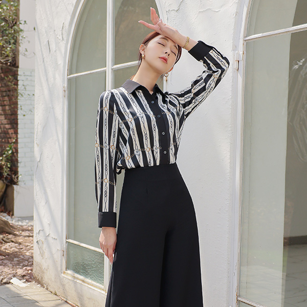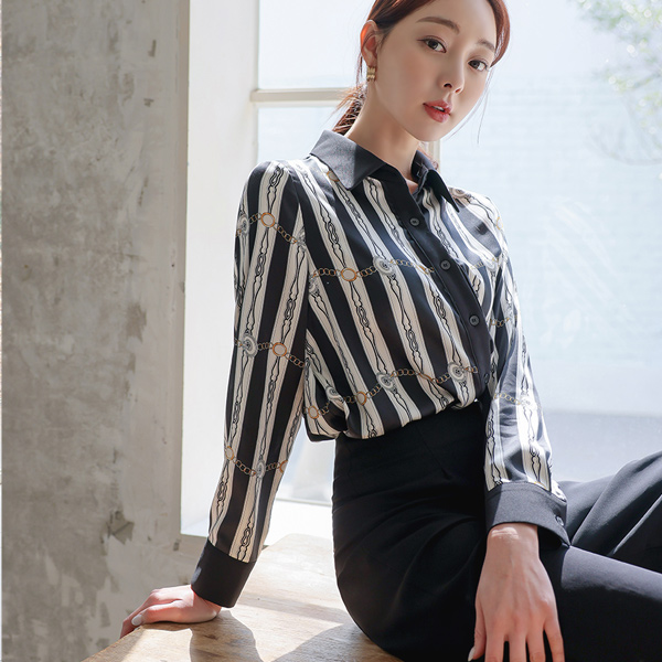 绸缎 条纹 链条 衬衫 领子 罩衫