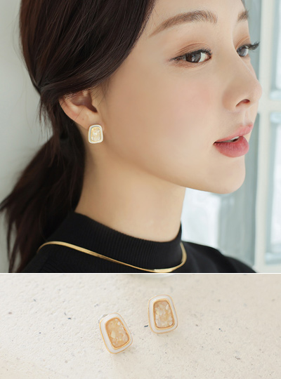 白色线条 金色螺钿 耳环