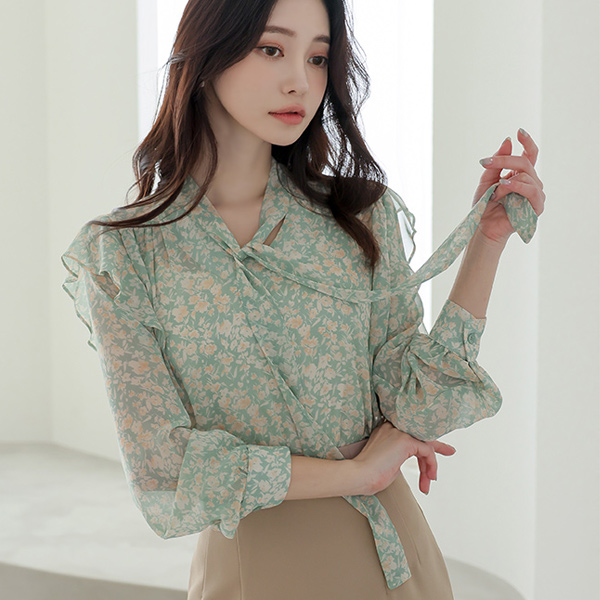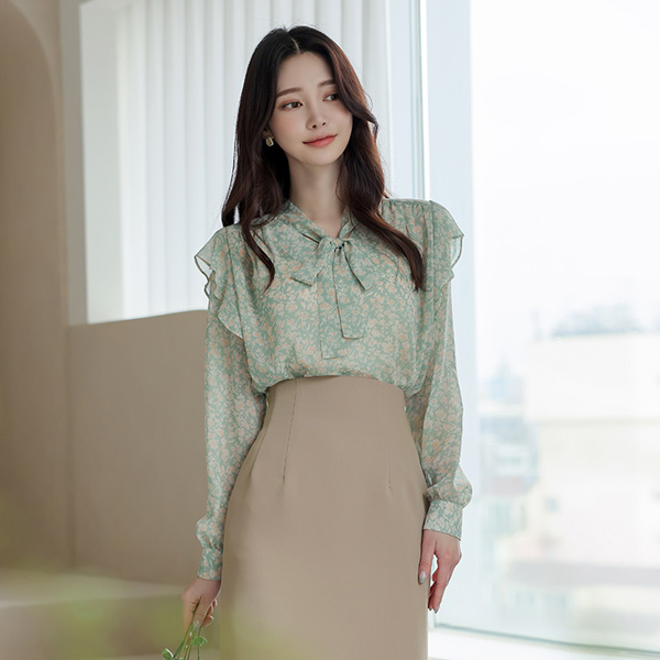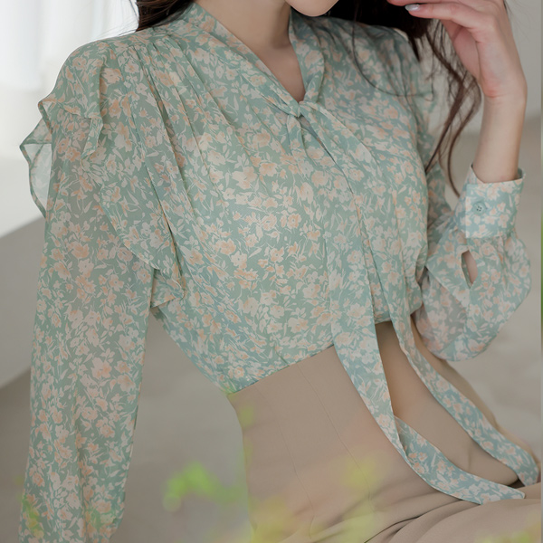 雪纺 花纹 领带 罩衫