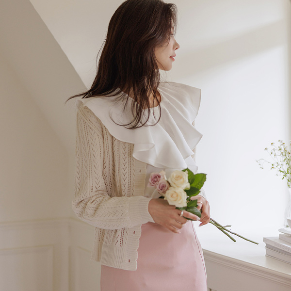 丰盛的 Ellin 荷叶 有光泽 罩衫