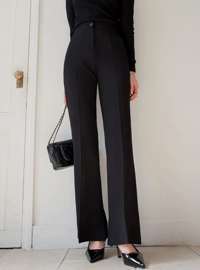 两扣 延长 水洗 喇叭 牛仔色 弹力 裤子