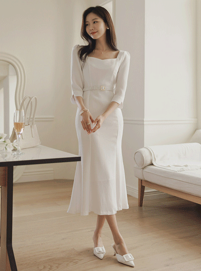 奢华裙 黄金 腰带 美人鱼 线条 连衣裙