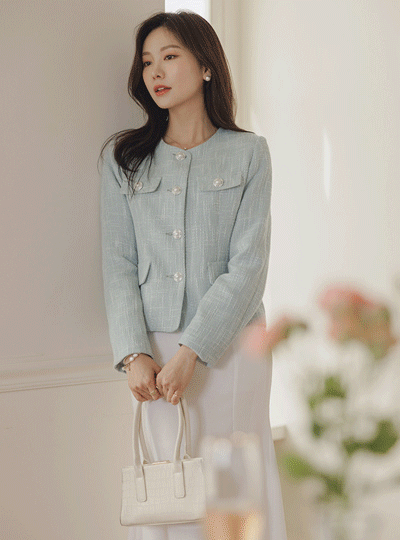 古玩 珍珠 扣子 粗呢 7分裤 夹克
