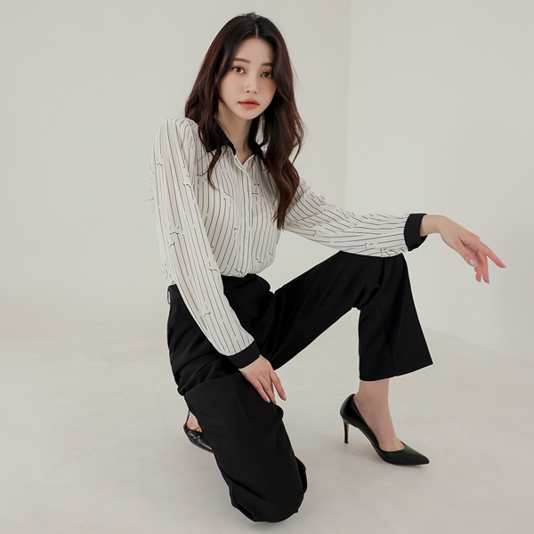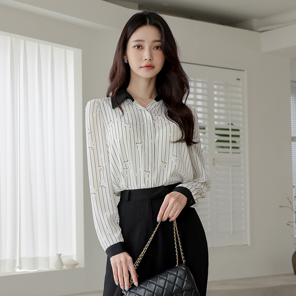 配色 领子 条纹 罩衫