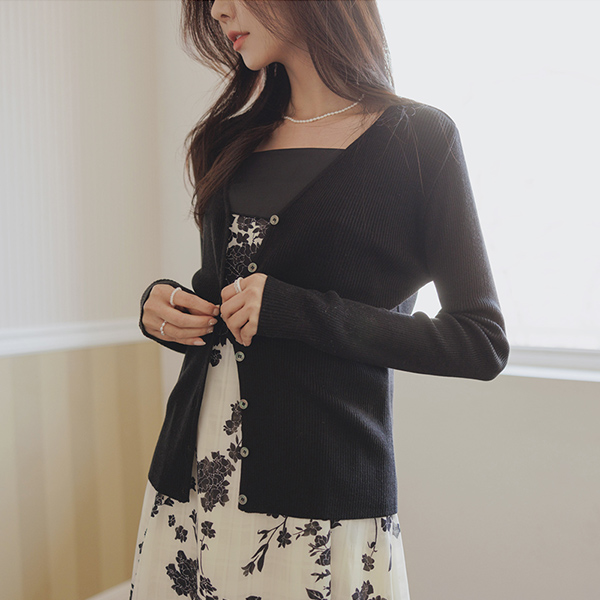 漂亮的版型 日常 V字领 条绒 针织衫 开衫
