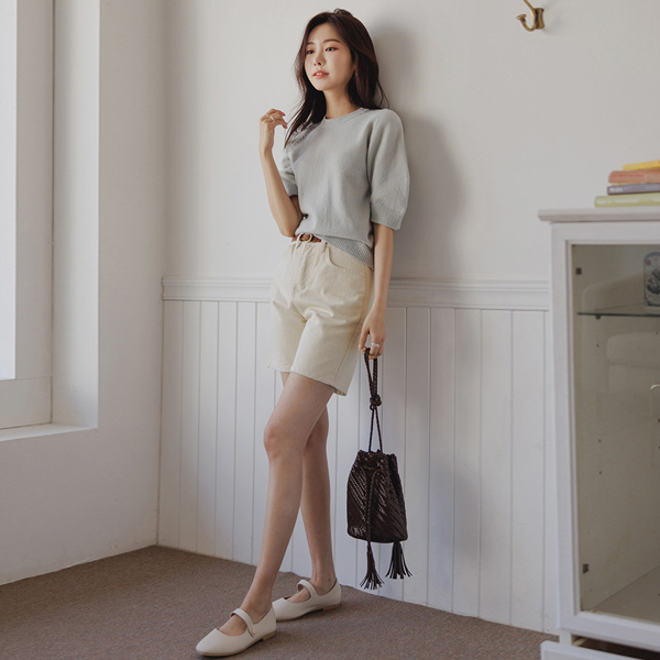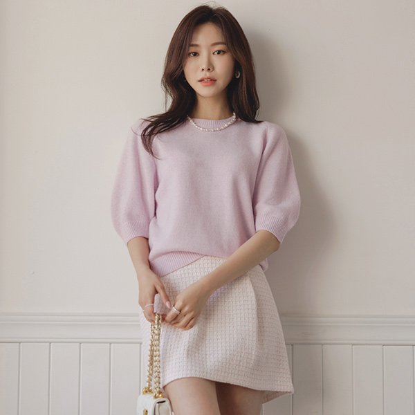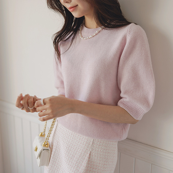 美利奴 Macaron 颜色 曲线 泡泡袖 针织衫