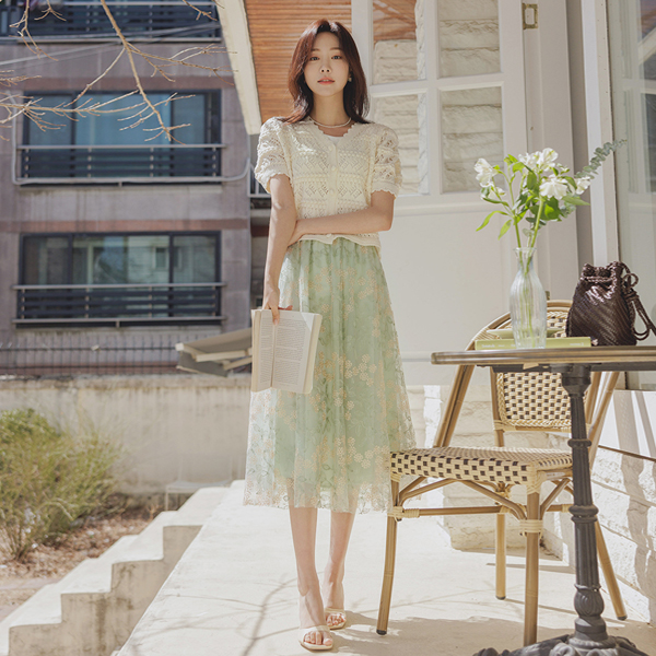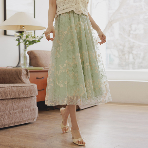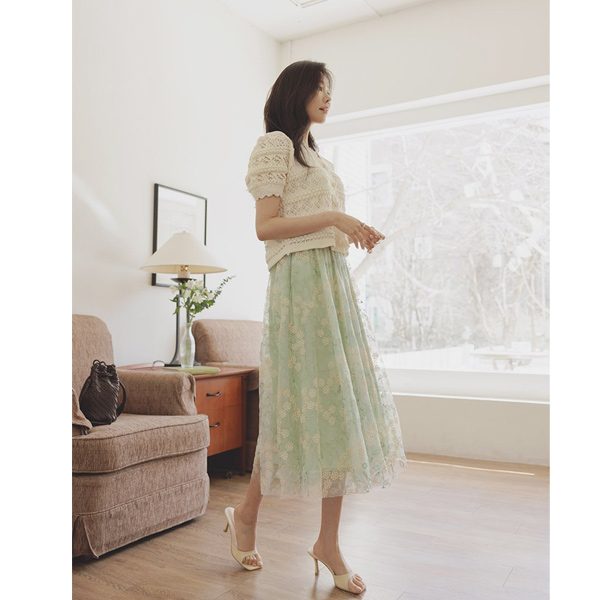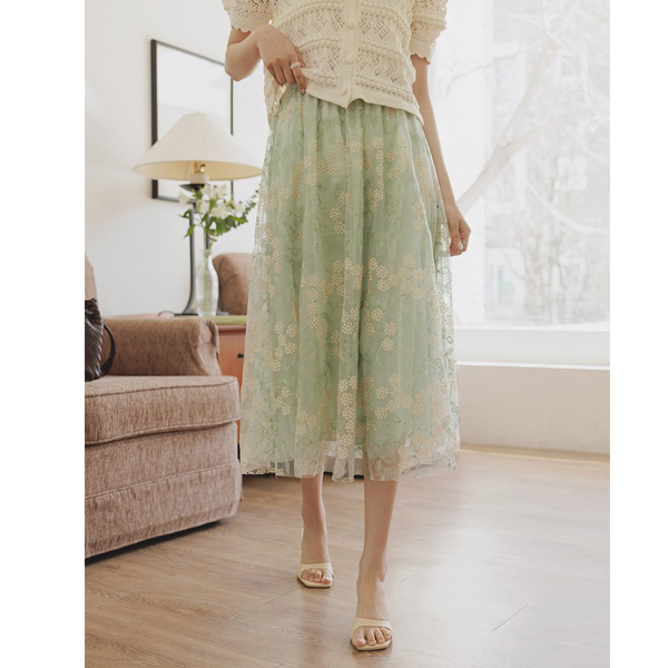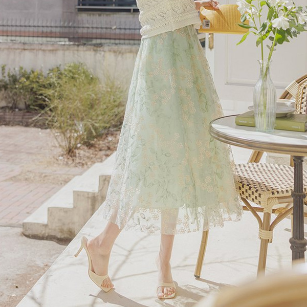 春季 花纹 缂丝 双 薄纱 松紧带 裙子
