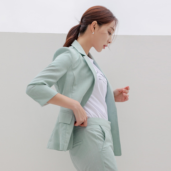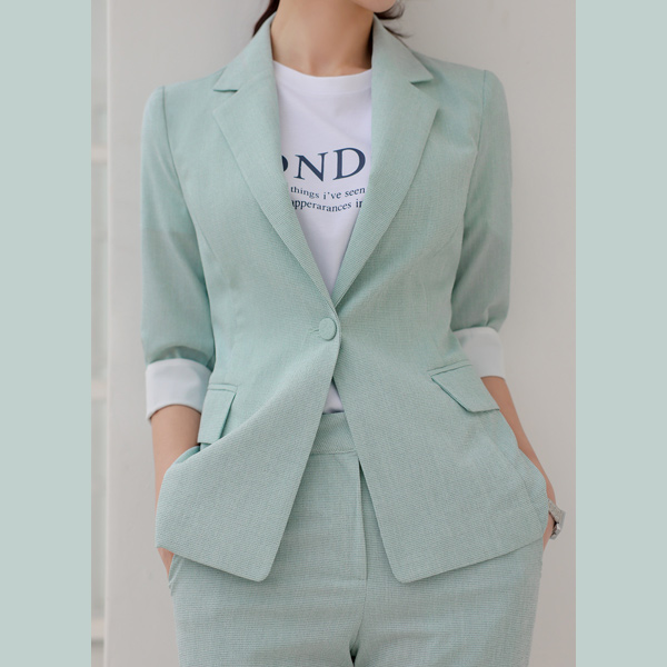 小格子图案 亚麻 质地 袖 配色 夹克