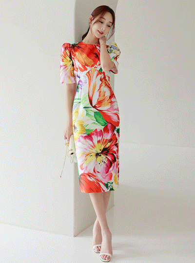 Blossom 绸缎 泡泡袖 连衣裙