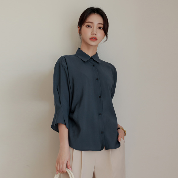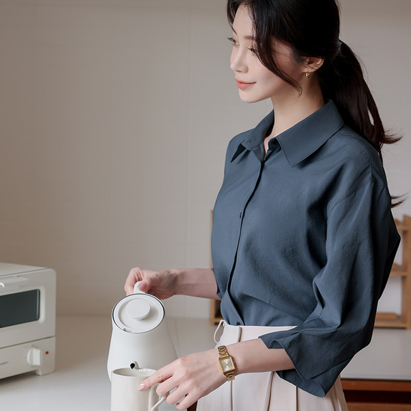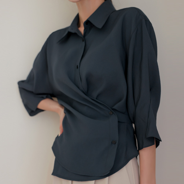 莫代尔 细褶 褶皱 双重 衬衫 罩衫