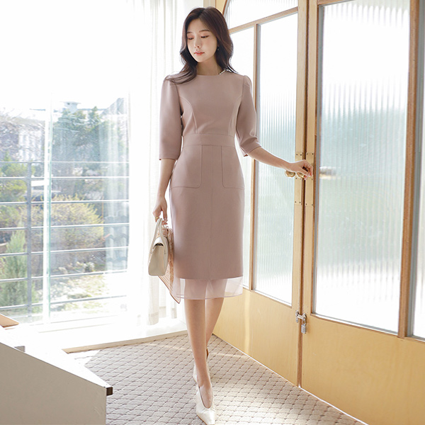 shasha 女性化的 底端 透视 修身 连衣裙