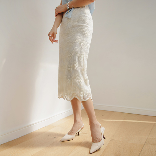 柔软的 缂丝 细节 长款 蕾丝 裙子