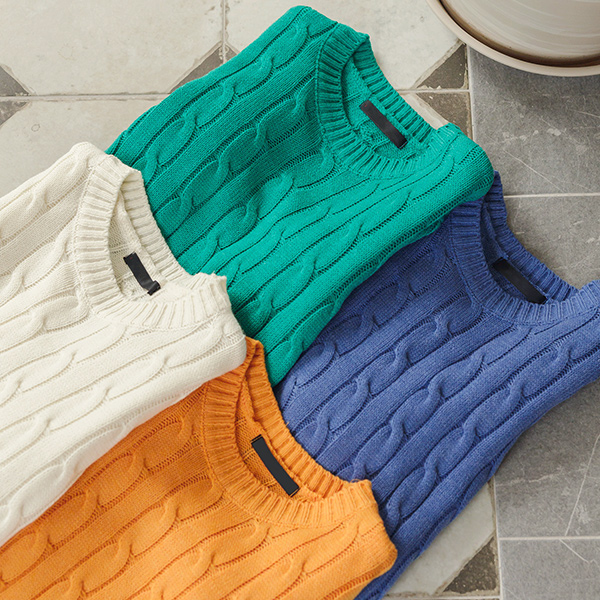 缆绳 编织的 颜色 点缀 针织衫