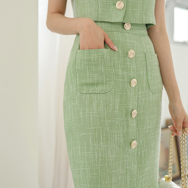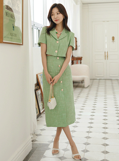 奢华裙 金色纽扣 粗呢 7分裤 夹克