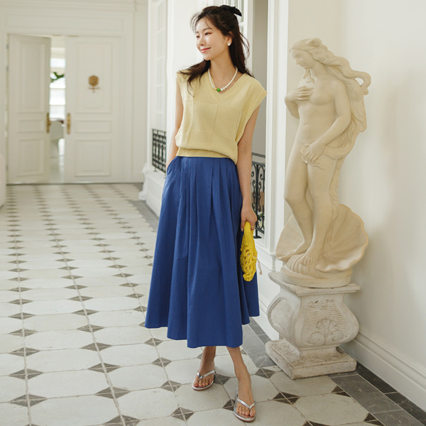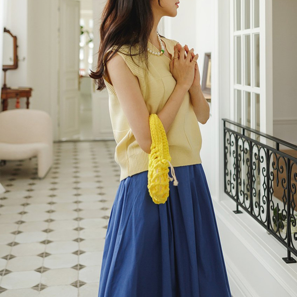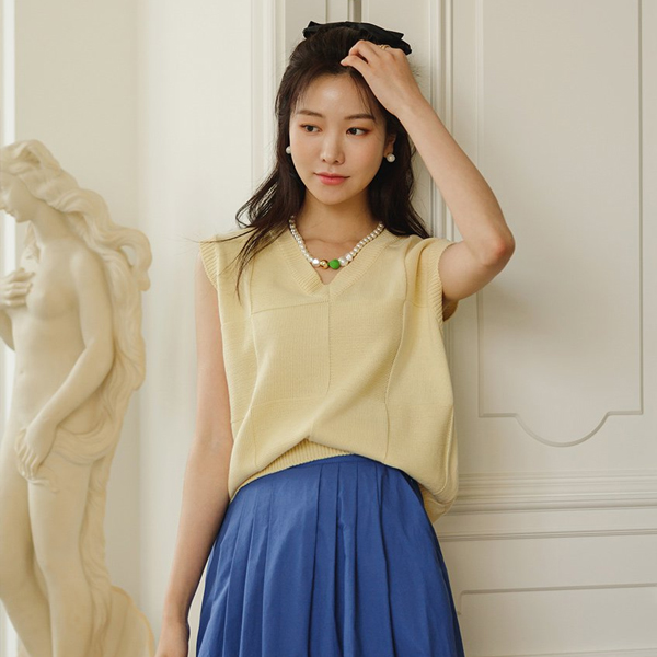 厚底 编织的 柔色 颜色 V字领 针织衫 马甲