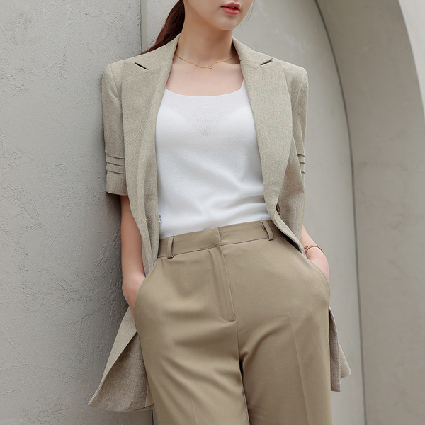 褶皱 袖 双排扣 短袖 夹克