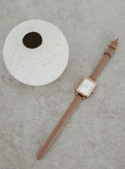 摩登 方形 牛皮 手表