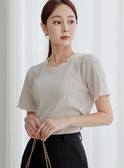 官方网站 去皱纹 褶边 短袖 T恤衫