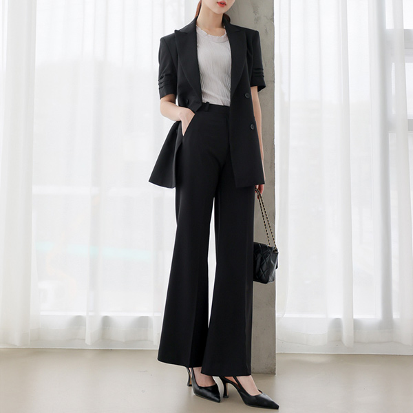褶皱 袖 双排扣 短袖 夹克