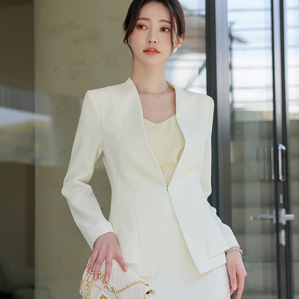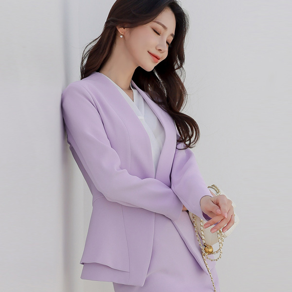 柔色 二重 荷叶边 无领 夹克