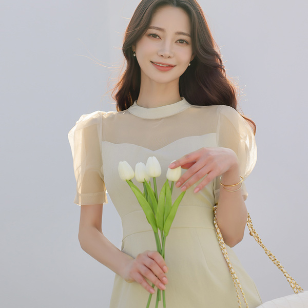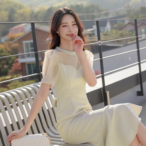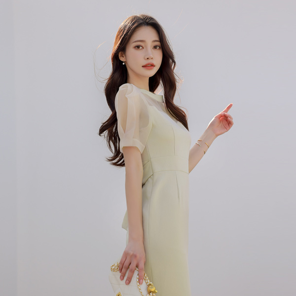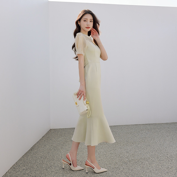 透明硬纱 泡泡袖 袖 美人鱼 连衣裙