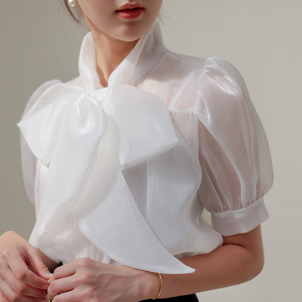闪亮 透视 蝴蝶结领结 罩衫
