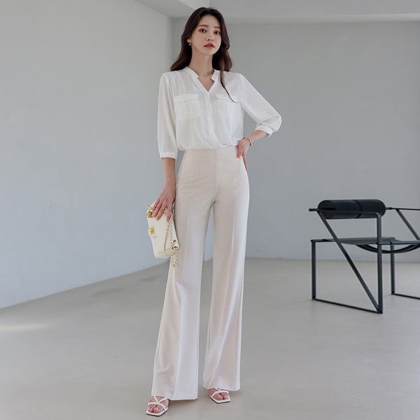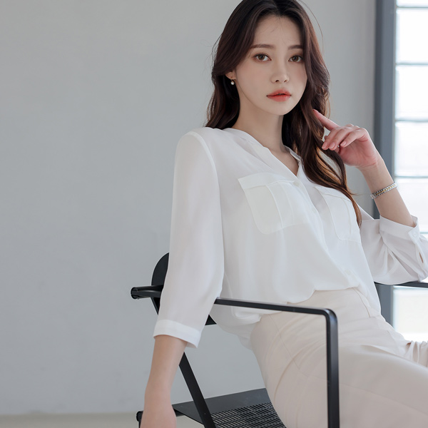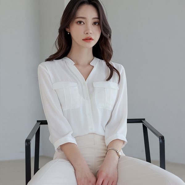 半开 亨利领 有盖口袋 罩衫