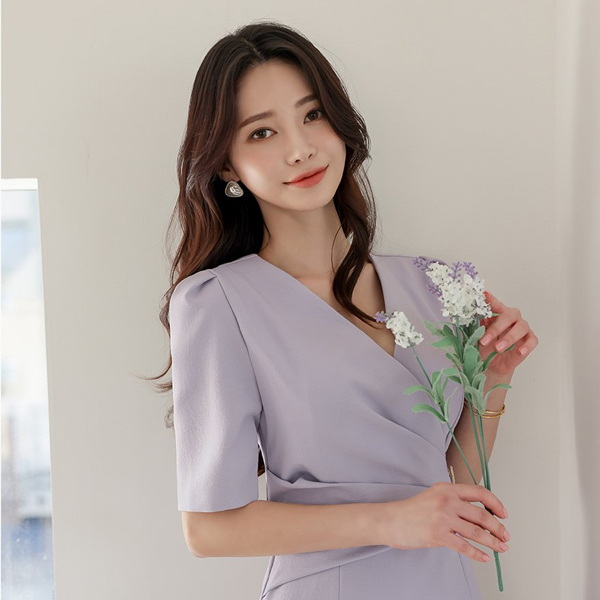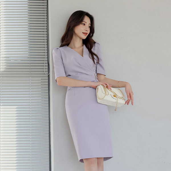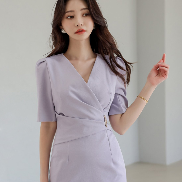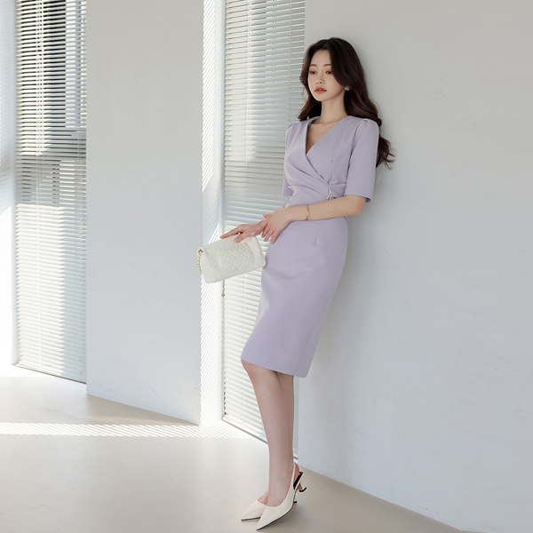 波浪卷 胸针 褶皱 裹身 弹力 连衣裙