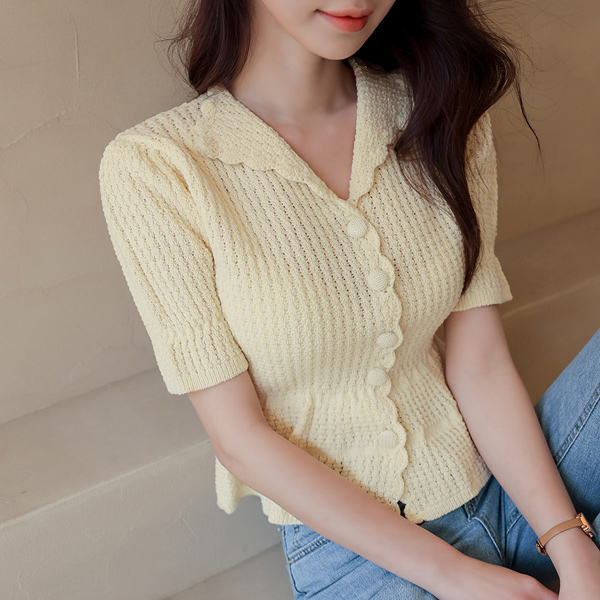 波浪卷 线条 单领 开衫 针织衫