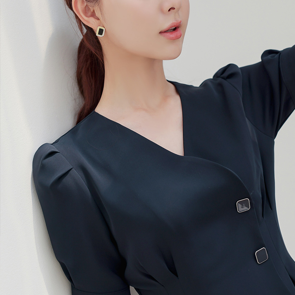 Silver 方形 扣子 细褶 Surplice 连衣裙 Ⅱ