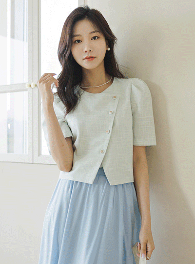 闪亮 泡泡袖 斜线 夏天 粗呢 夹克