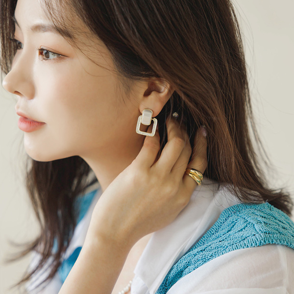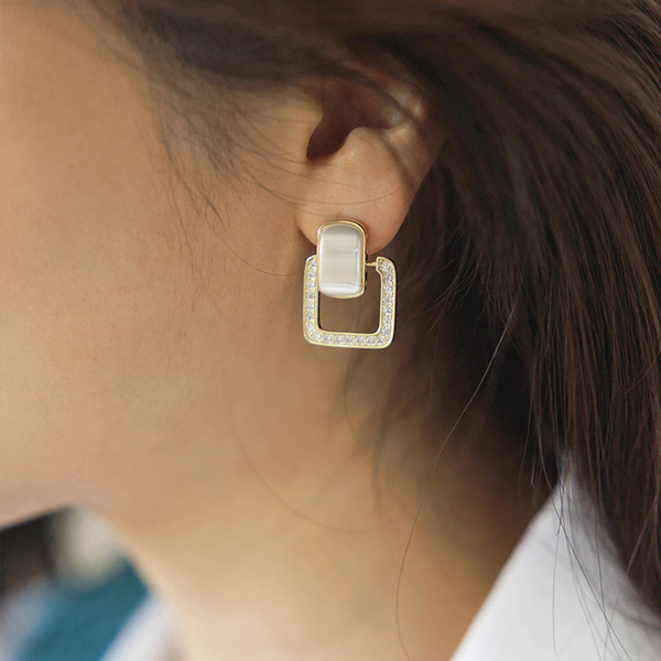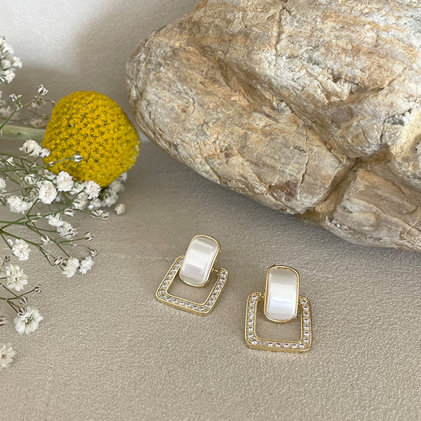方形 镶钻 点缀 耳环
