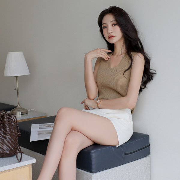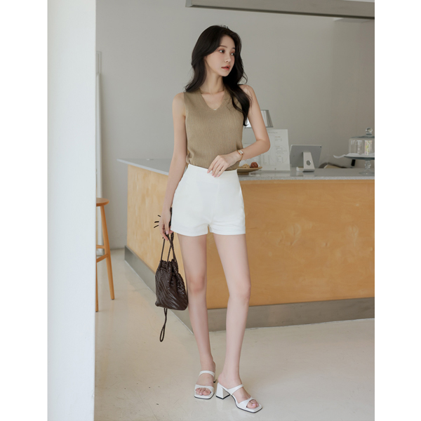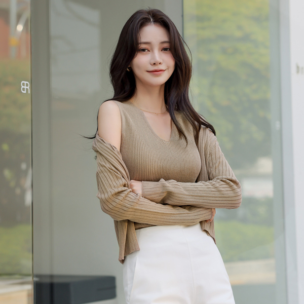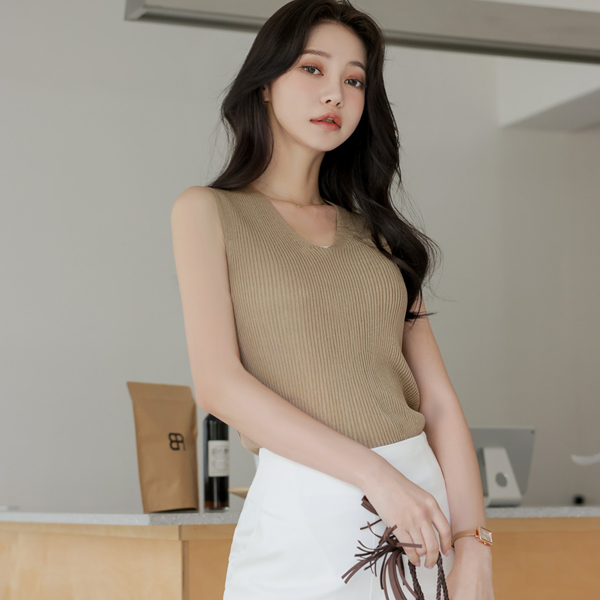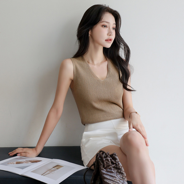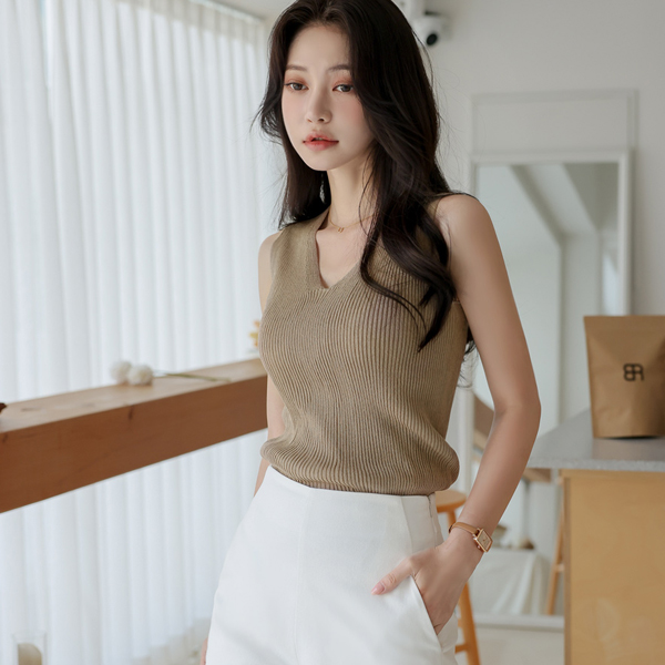 基本 斯利姆 条绒 V字领 针织衫 背心