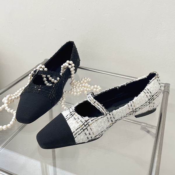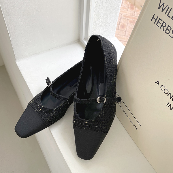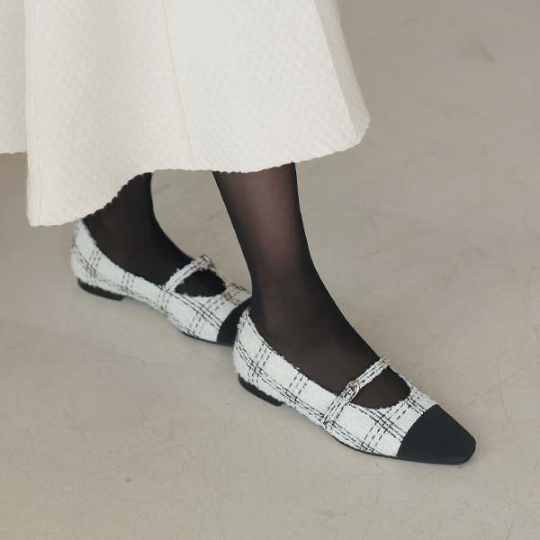 [模特穿44次]粗呢 点缀 配色 玛莉·珍 平底鞋