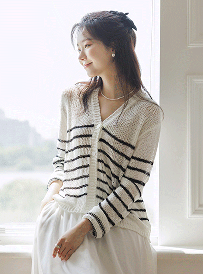 漂亮的版型 条纹 夏天 针织衫 开衫