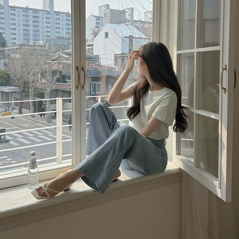 轻微的 日常 夏天 牛仔色 裤子