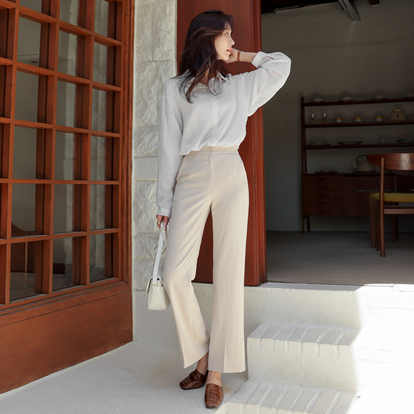 Soft 温和 夏天 亚麻 后侧松紧带 宽松长裤