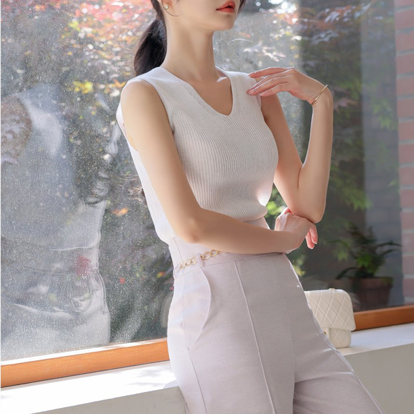 基本 斯利姆 条绒 V字领 针织衫 背心