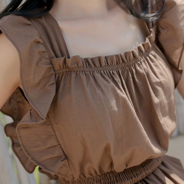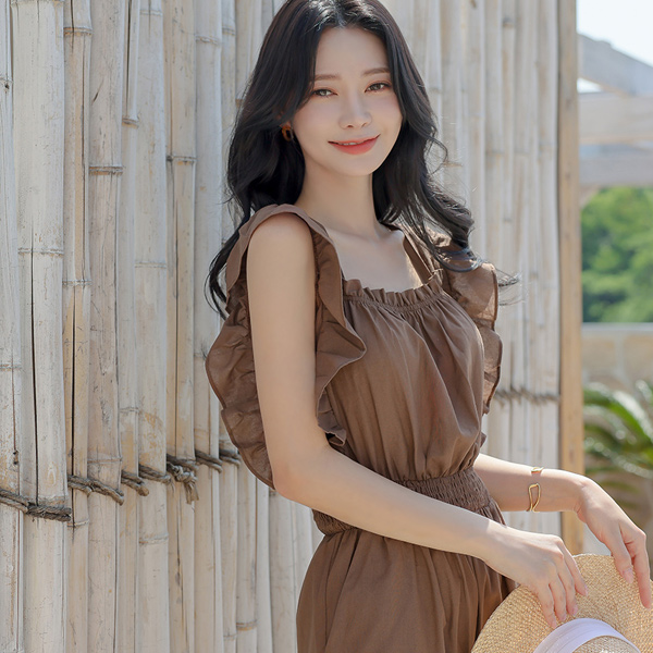 亚麻棉混纺 荷叶 背心 连体裤