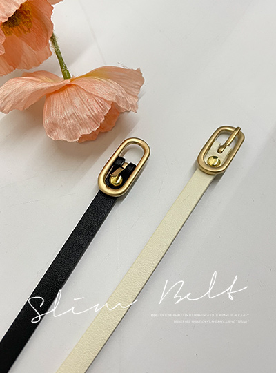 黄金 哑光 椭圆带扣 斯利姆 腰带